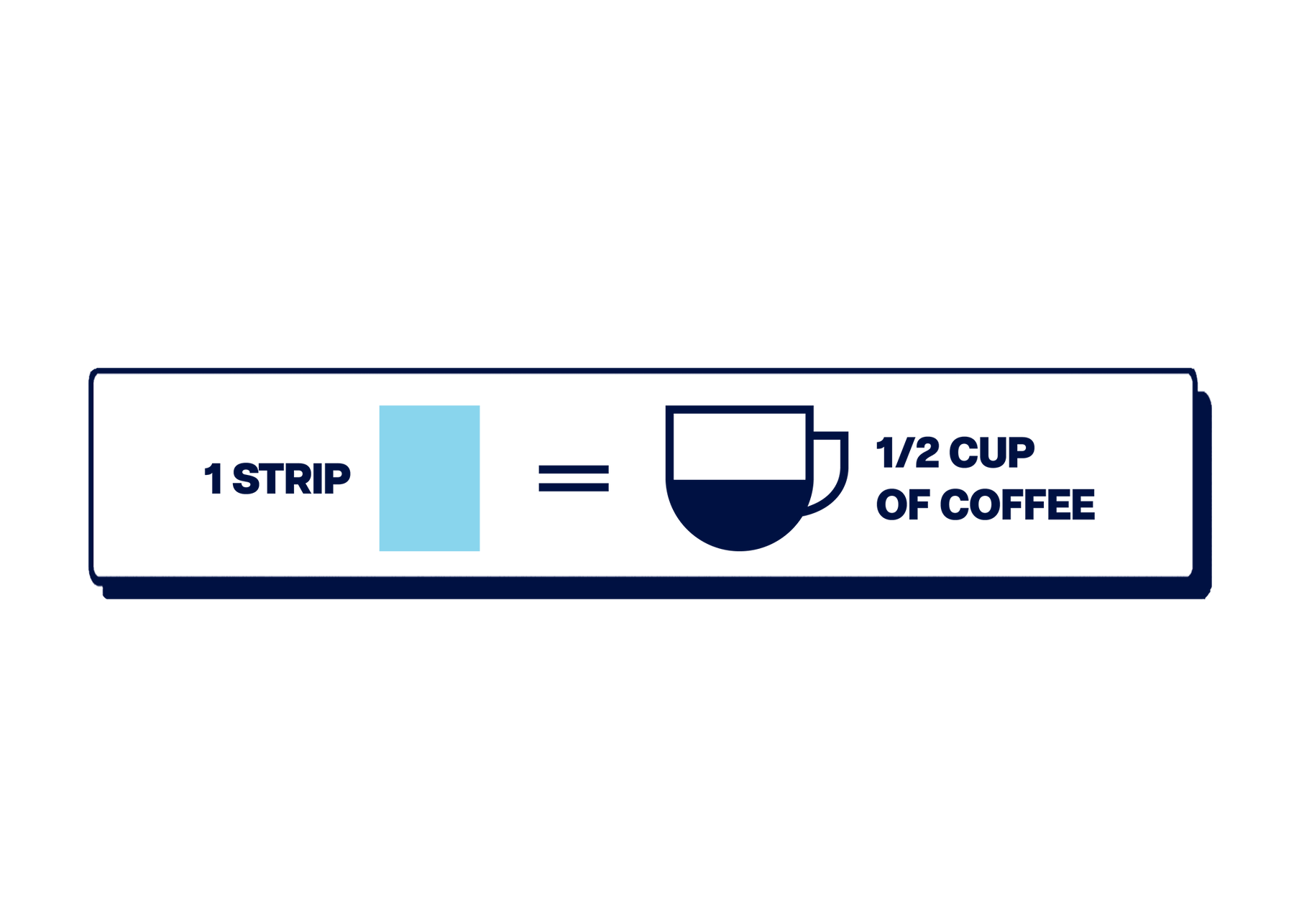 Each strip delivers 45mg of natural caffeine + essential b-vitamins. We like to compare one strip to half a cup of coffee worth of caffeine.